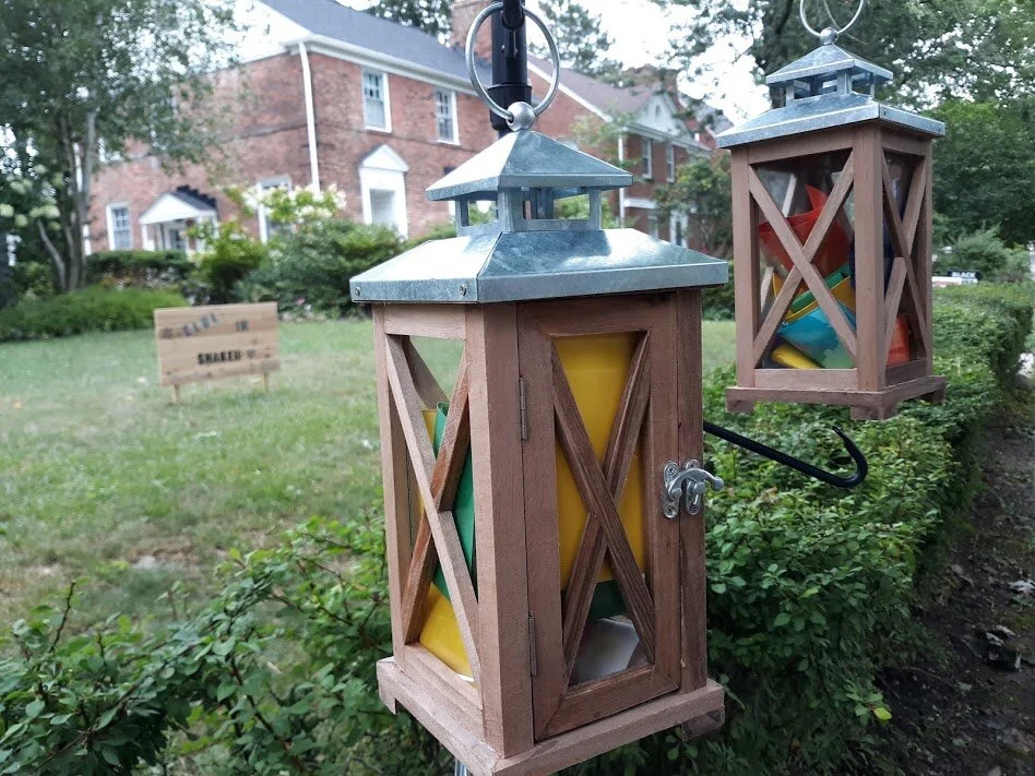During the month of Elul, anyone walking by our house, whether they were Jewish or not, was invited to participate in Elul in Shaker. They could take two pieces of paper and a marker out of a bin Iaying in front of our house, write something they were not proud of, and place it in the lantern hanging on the left. On the other piece of paper, they could write something they were proud of or hoped to do better in the future, and place that note in the lantern hanging on the right.